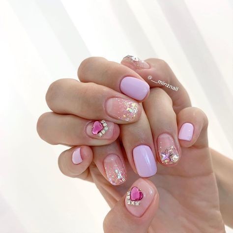 Nếu bạn thích cả sự ngọt ngào, sang trọng và đáng yêu, bạn có thể thử sơn móng tay màu hồng nhạt và trang trí với những đồ trang sức lấp lánh như trong hình này.