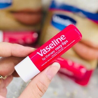 - Vaseline Lip Therapy Rosy Lips: Đây là dòng son dưỡng môi có màu duy nhất của Vaseline. Nhãn có màu đỏ, son lên môi có màu đỏ hồng, hương vani ngọt ngào. Có công dụng làm hồng và tẩy da chết nhẹ cho môi.