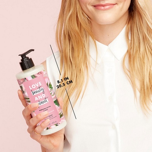 Bao bì em này cũng khá xinh, dạng chai lớn có hình ảnh những nhánh hoa. Tổng thể màu hồng nhạt nhẹ nhàng. Vòi pump giúp tiện lợi cho việc lấy sản phẩm.